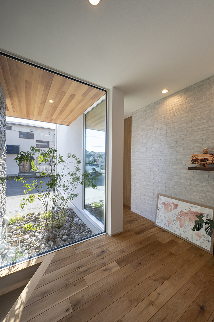 大きなFIX窓で坪庭が望めるように設計。開放感あふれる空間になっています。