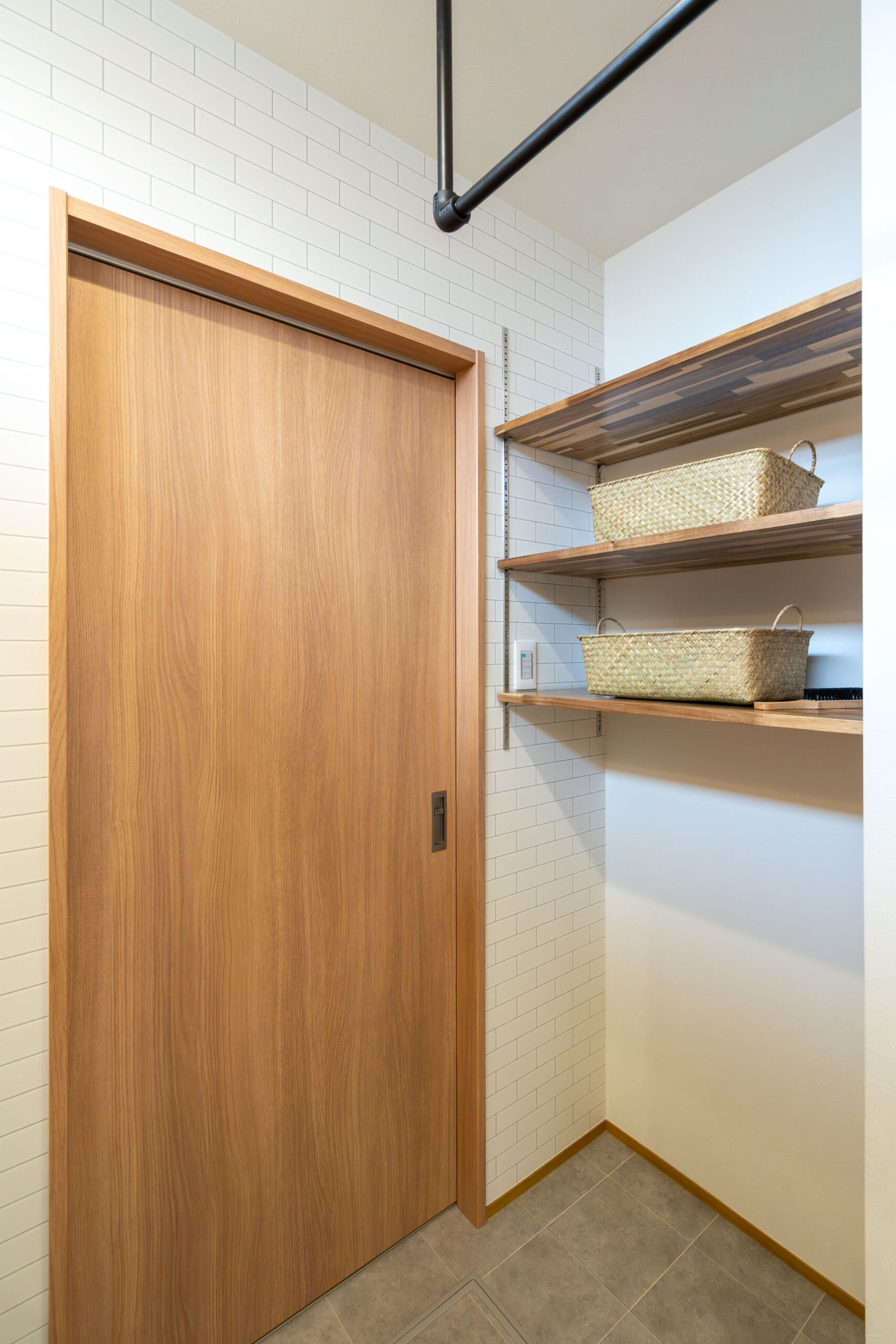 部活の泥汚れや重い荷物も、リビングを通らずにショートカットで片付けられる、お掃除をラクにする工夫です。
