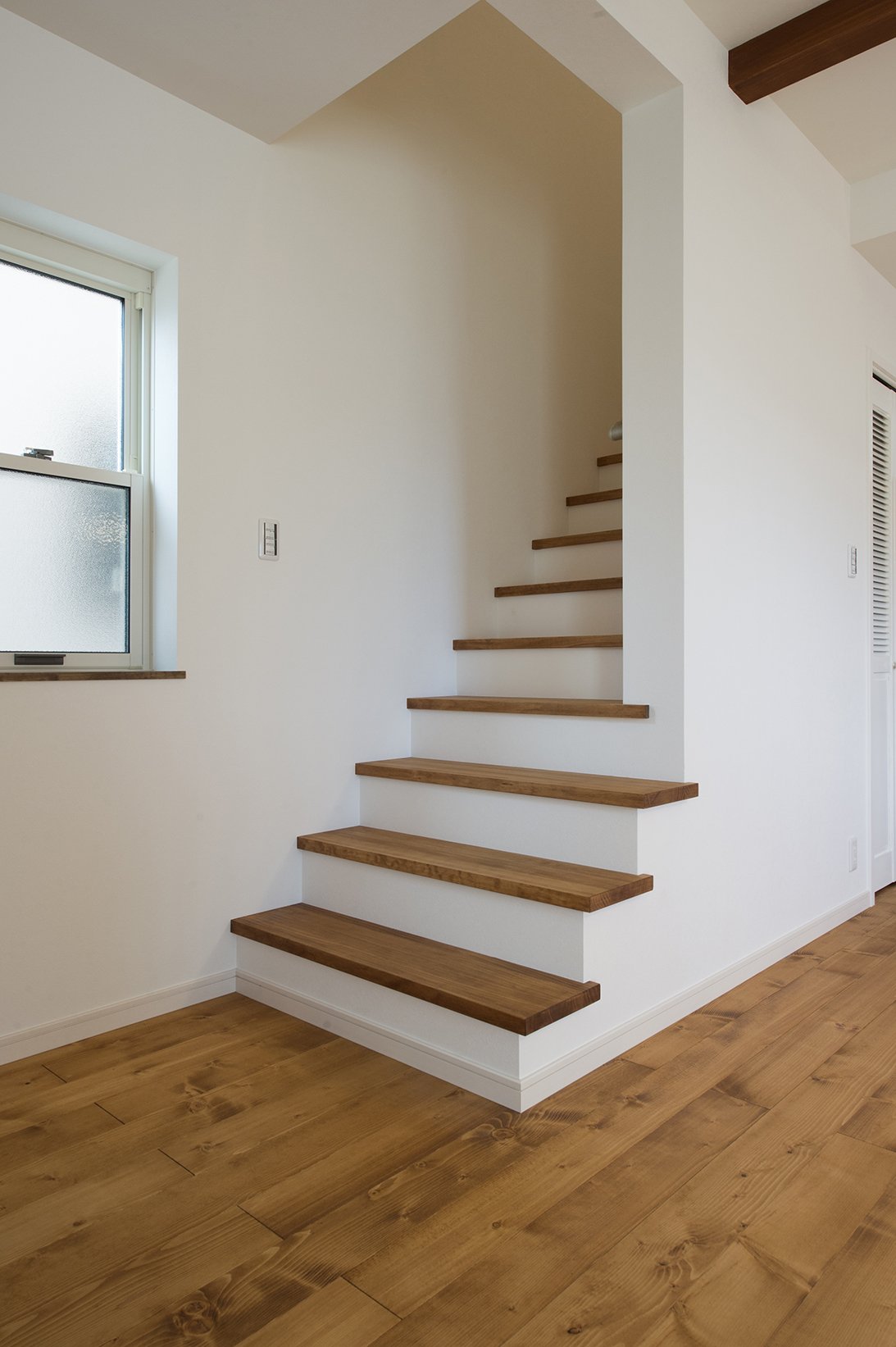 中心はママのキッチン♪お料理をしていても、ほかの部屋に目が届くようになっています。白と木目の暖かさの中に、ポイントで緑をいれて素朴で可愛らしいMamanのお家になりました。