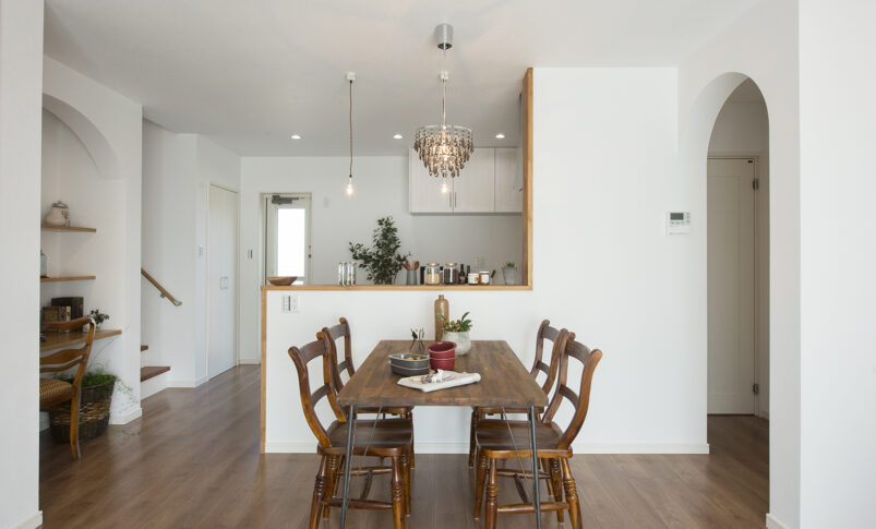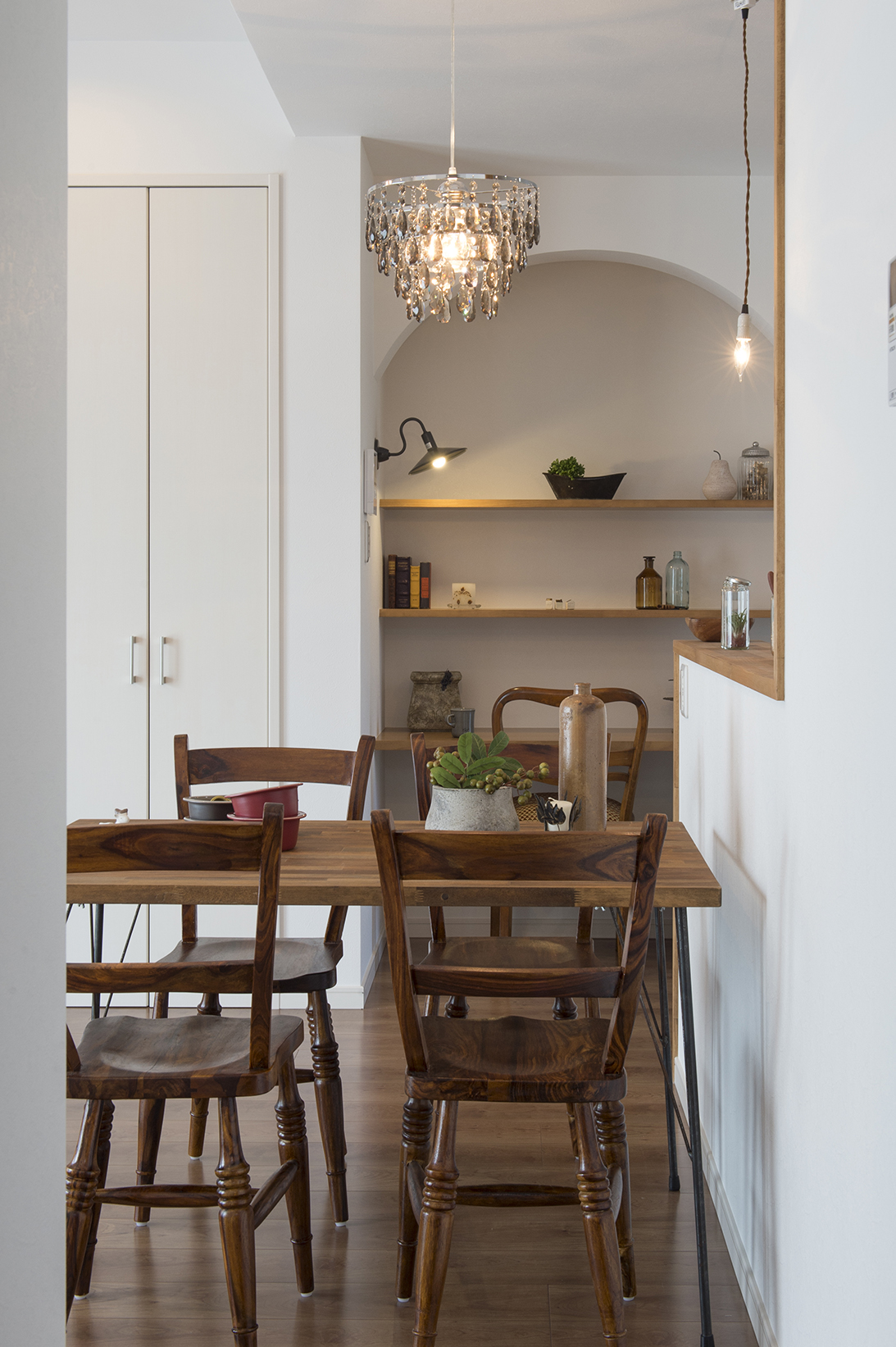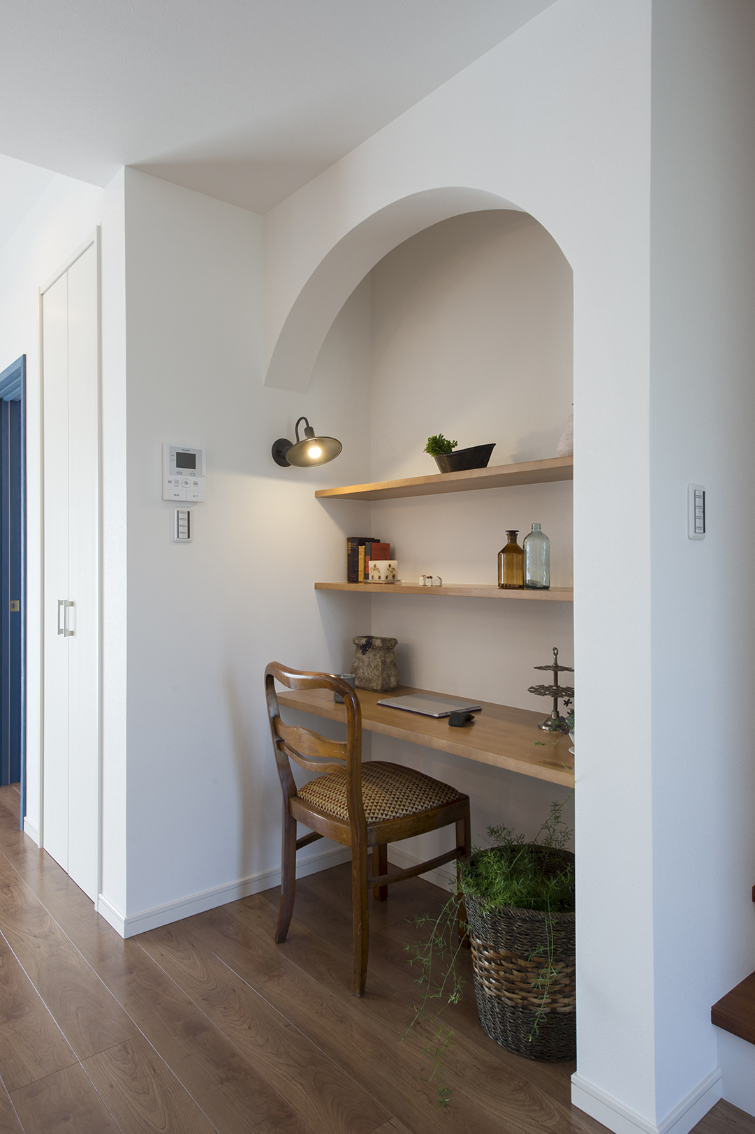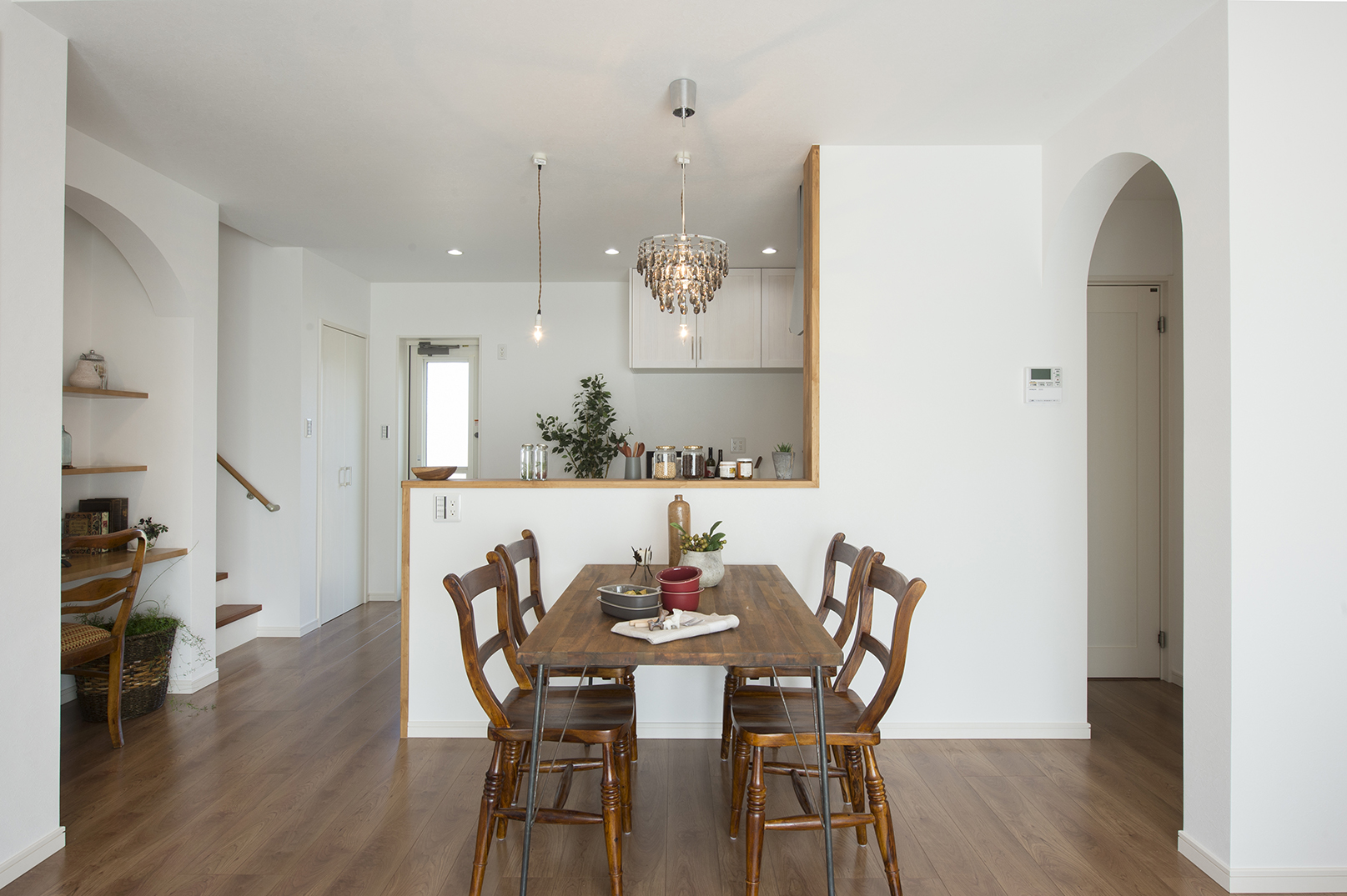 アールのたれ壁が印象的なアンティーク調にもナチュラル風にも模様替えできるお家。家具や雑貨でおうちの雰囲気がガラリと変わります。模様替えが好きな奥様にぴったり♪
