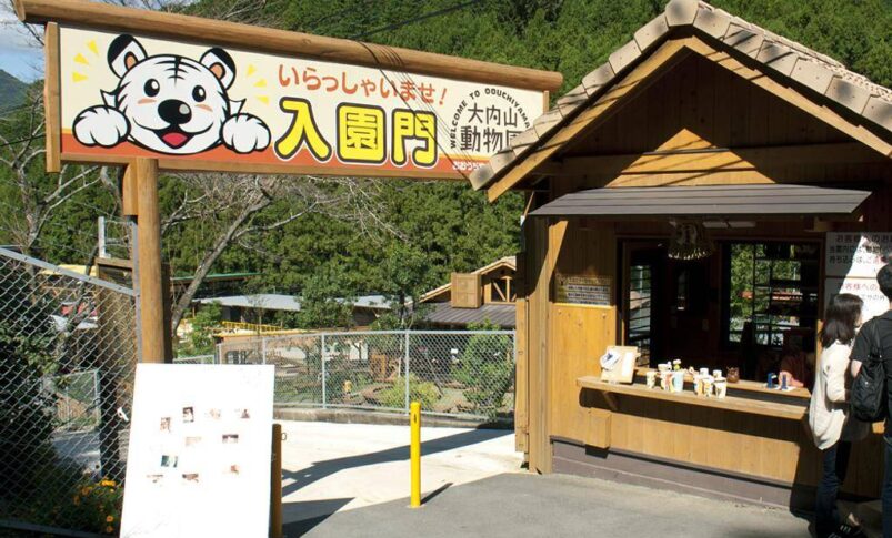 大内山動物園では、多くの動物に餌をあげることができます。 私たちはヤギやヒツジなどのエリアで挑戦しました。