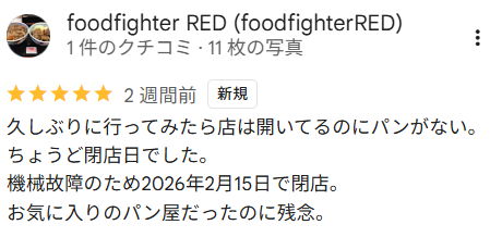 2か月に一度くらいに各兄弟に向けてパンを送ってくれるのですがパンが届いた次の日に閉店の知らせを聞いて