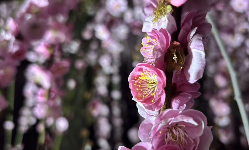 これはつい先日、仕事終わりに鈴鹿の森庭園に梅のライトアップを見に行った時の写真です🌸🌸