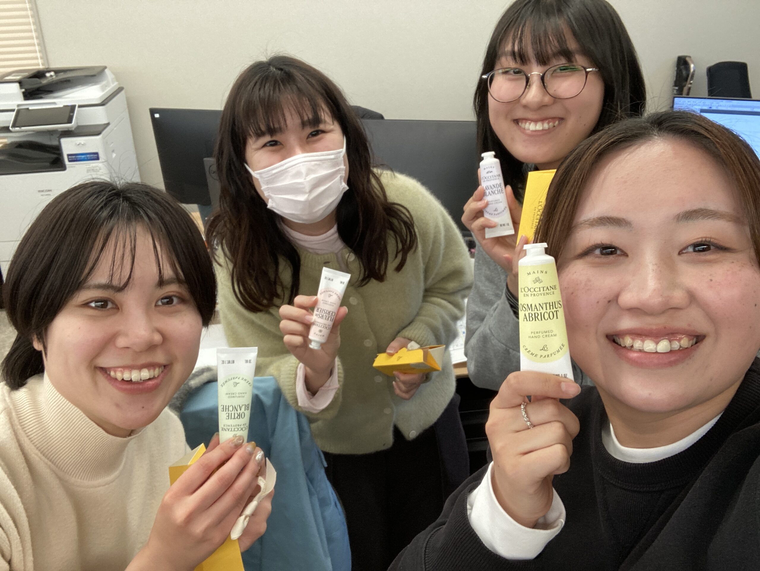 これは、私・永田さん・四方ちゃん・篠崎さんで担当させていただいたお客様から、お引渡しの時にいただいたハンドクリームです✨