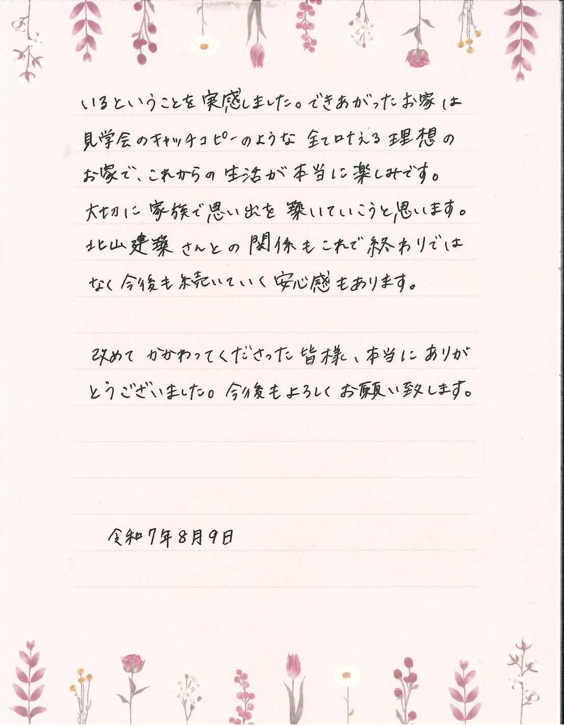 大切に家族で思い出を築いていこうと思います。 北山建築さんとの関係もこれで終わりではなく今後も続いていく安心感もあります。
