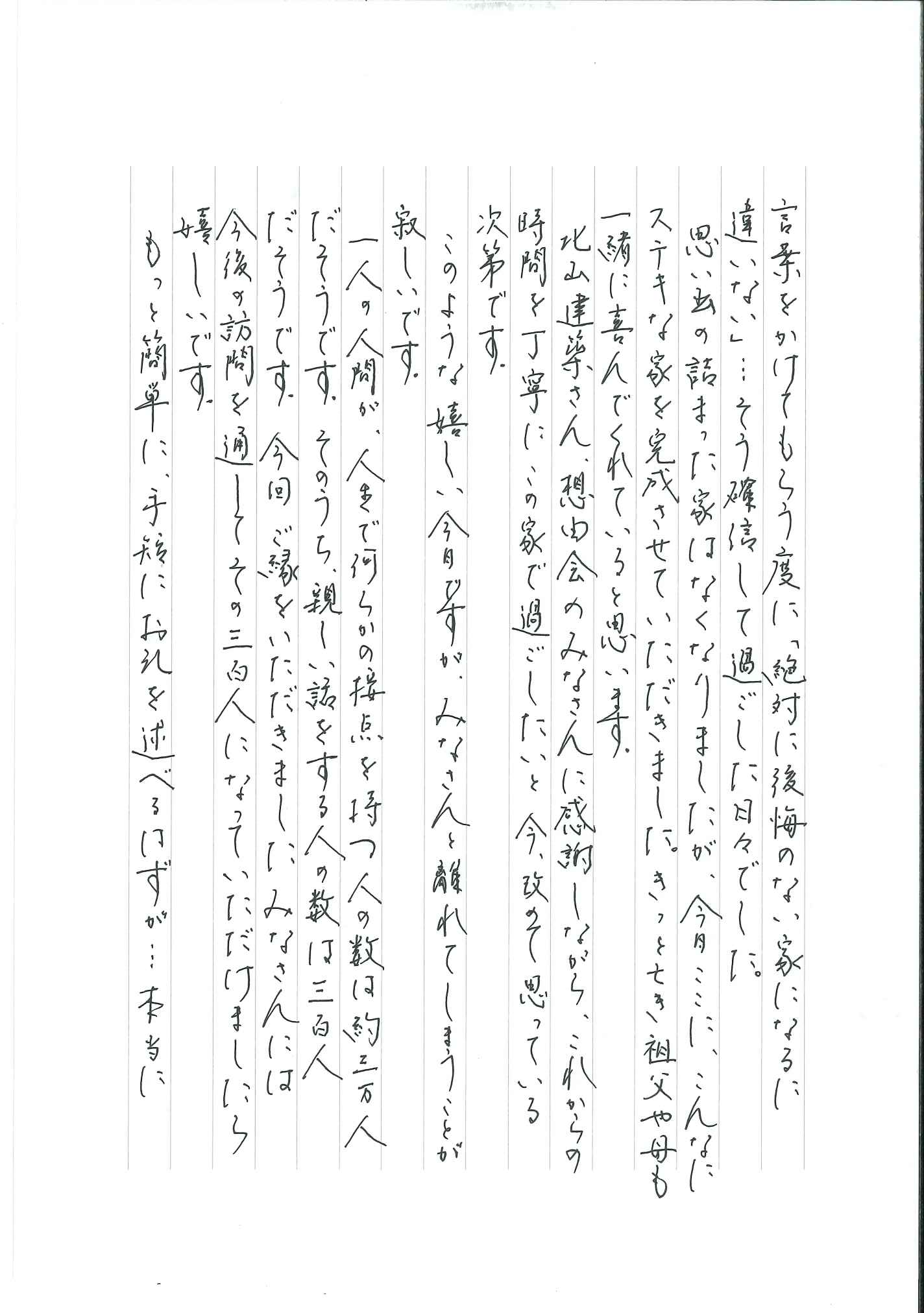 そんな私の気持ちはさておき、新しい家を目の前にしまして、北山建築さん、想由会の皆さんには感謝の一言です。