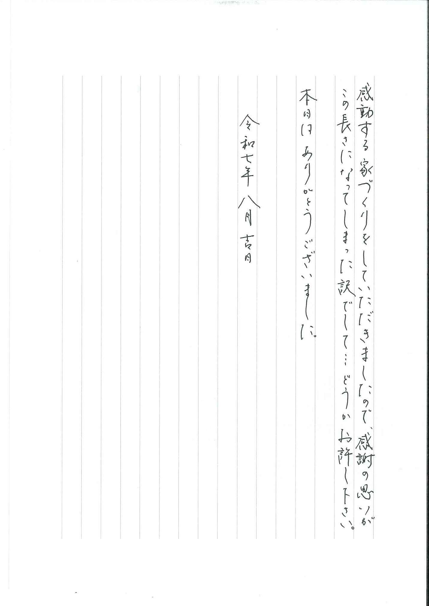 もっと簡単に、手短にお礼を述べるはずが…本当に感動する家づくりをしていただきましたので、感謝の思いがこの長さになってしまった訳でして…どうかお許し下さい。