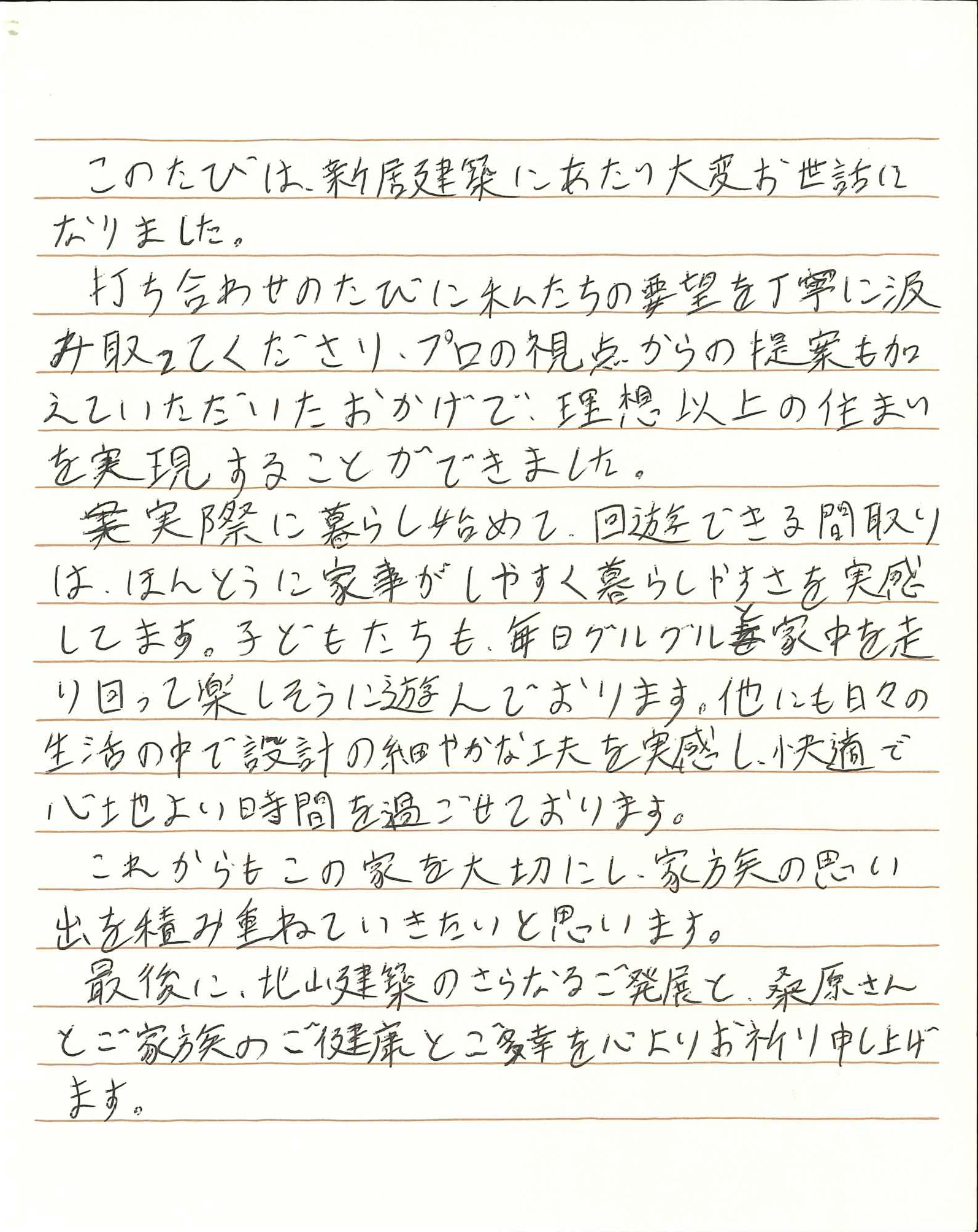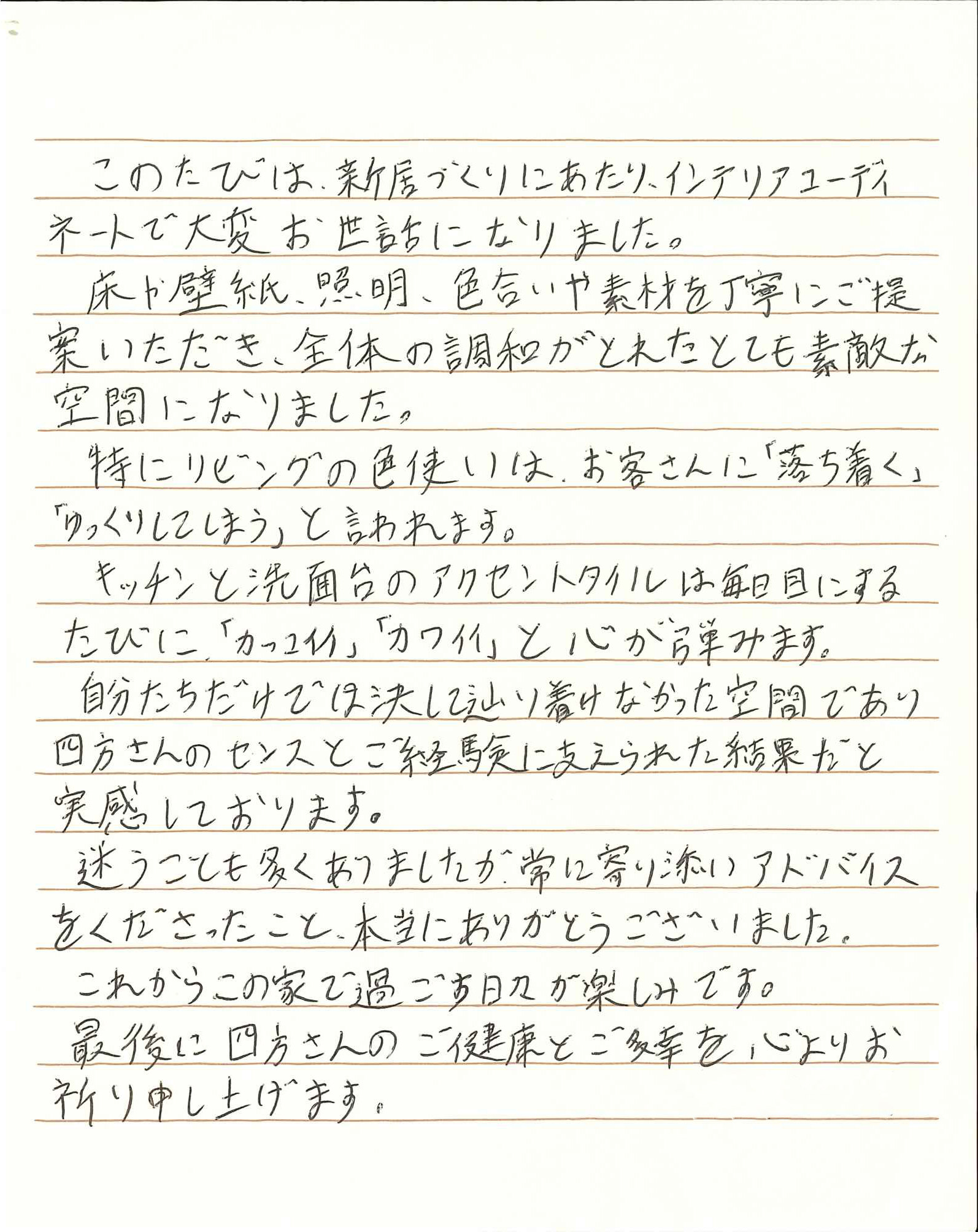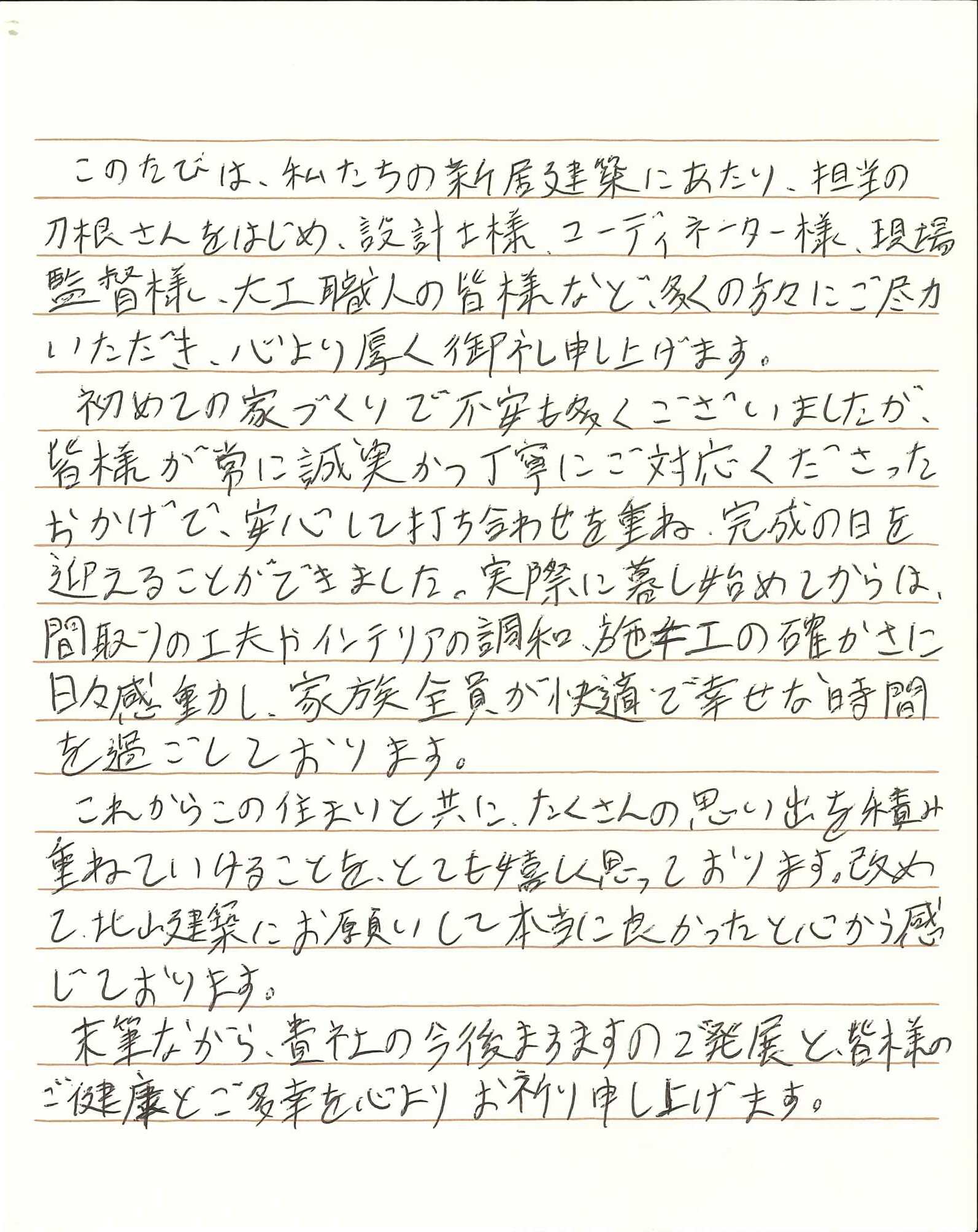 このたびは、私たちの新居建築にあたり、大変お世話になりました。