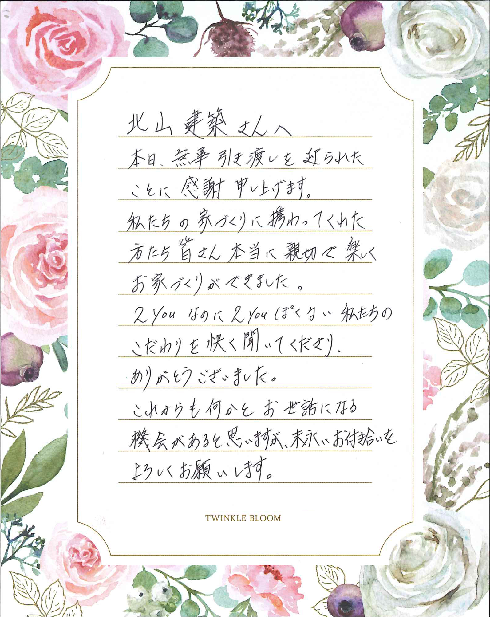 本日、無事引き渡しを迎えられたことに感謝申し上げます。