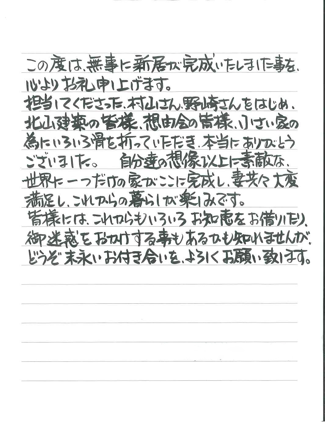 この度は、無事に新居が完成いたしました事を、心よりお礼申し上げます。