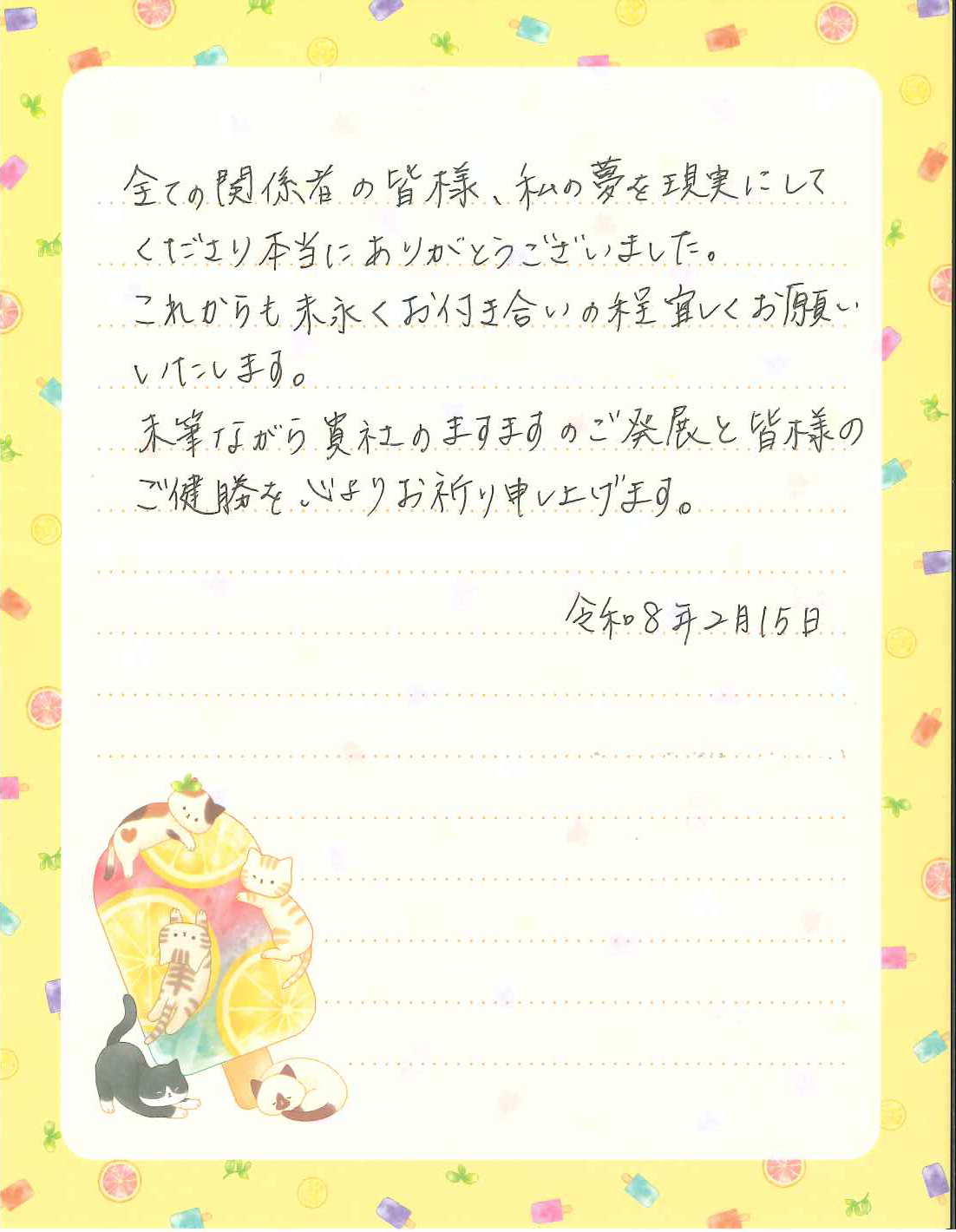 この度は私たちのお家づくりに携わっていただきありがとうございました。