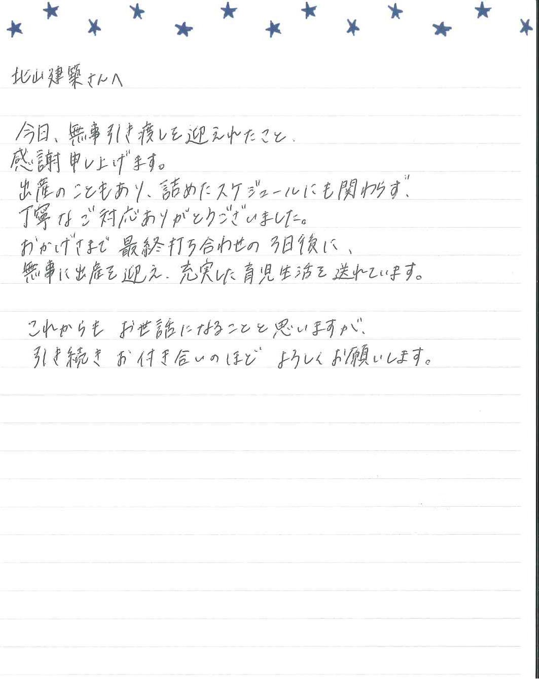 今日、無事引き渡しを迎えれたこと、感謝申し上げます。